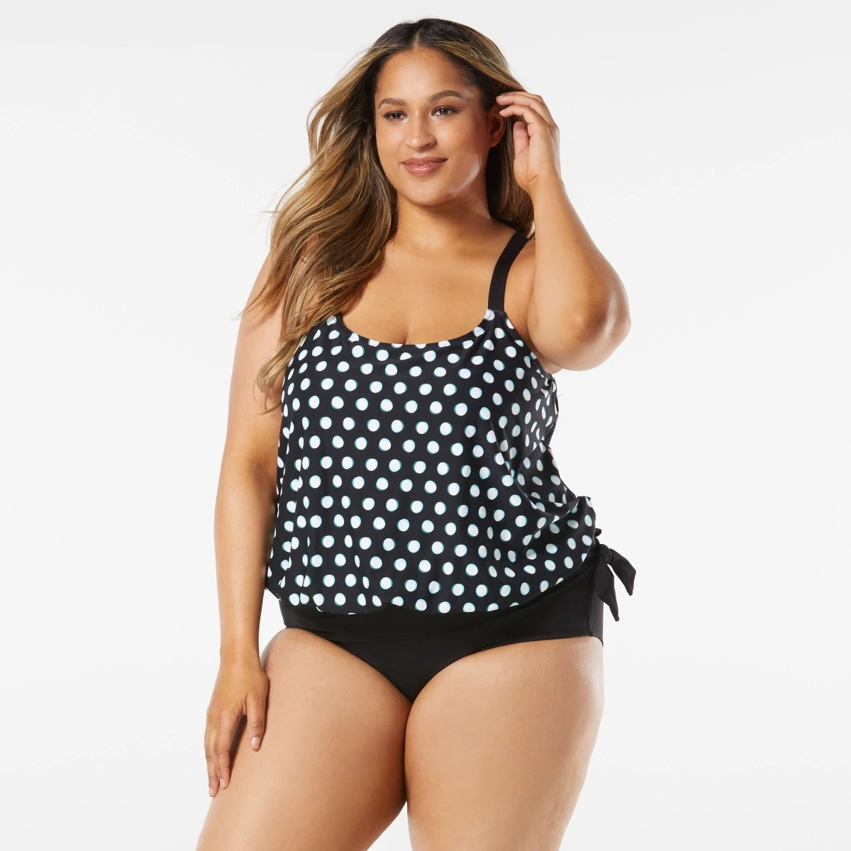 Get the perfect poolside look with the Beach House Plus Size Sarah Blouson Tankini Top. This tankini gives you feminine flare in a curve-contouring style in a retro inspired polka dot print. Soft cups provide shapely support while adjustable wide straps offer a customized, perfect fit! Beach House swimwear is designed with high-end fabrics that bend with you for extra comfort, easy fit and shape retention.
