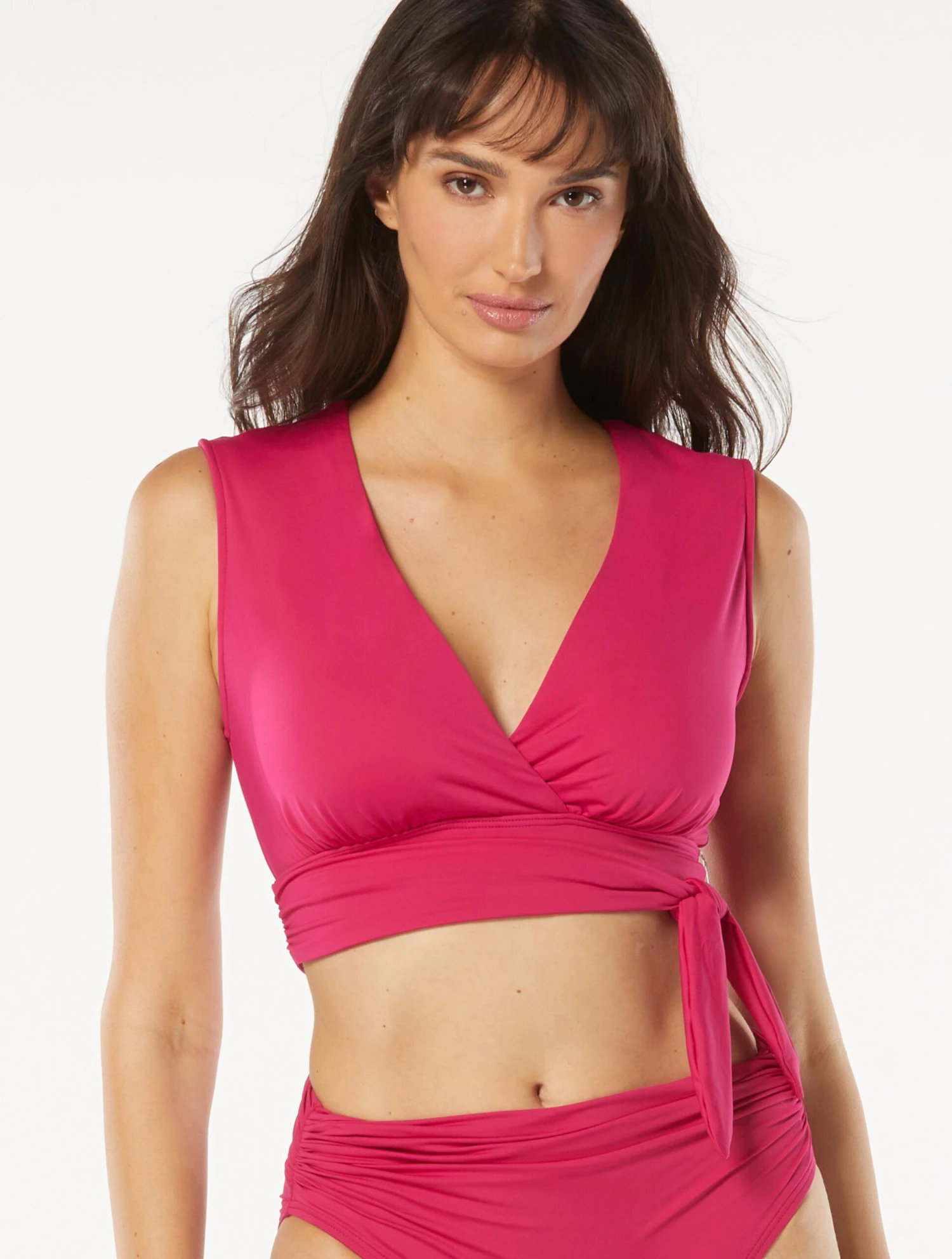 Mix and match the Carmen Marc Valvo Cap Sleeve Side Tie Bikini Top with your favorite swim bottoms or pair it with shorts for an effortless beach to street look. Featuring side ties, cap sleeves and removable soft cups in solid colors that pop.