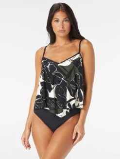 Let your fashion fly with the Carmen Marc Valvo Flyaway Scarf Tankini Top! In a plumeria inspired floral print and flyaway hem, this tankini is flattering and fashionable for all your sunny days.