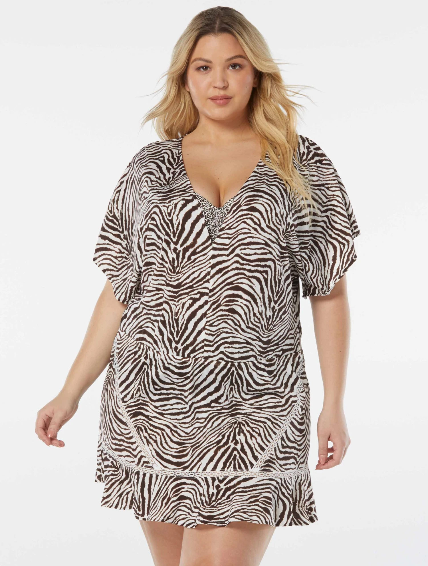 Add beauty and poise to your cover up collection with the Coco Reef Adorn Cover Up Dress in a bold, brown, zebra print. This dress is made from lightweight fabric that gives you a cool and comfortable overswim option to take your favorite Coco Reef swimsuits from chic to chicly covered up.