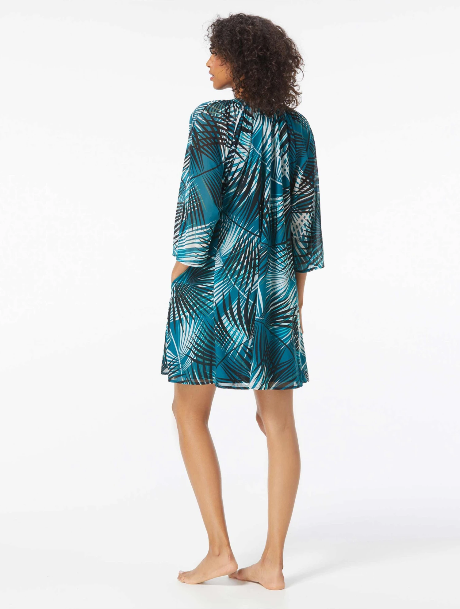 Let your cover up style wander with you wherever the sun may take you in the Coco Reef Wanderlust Cover Up Dress! In a bold, teal, palm print with lace up neckline it’s bound to make a statement on the beach to the boat and everywhere in between. Pair it with coordinating Coco Reef printed pieces or solid swimsuits for versatile options.