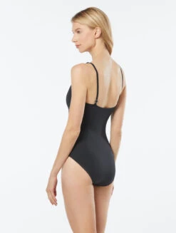Let your swim style radiate in this curve-accentuating Gabar Chlorine Resistant Draped Surplice All Print Sarong One Piece Swimsuit. Featuring an allover, colorful print inspired by sea urchins, accentuated with underwire, removable soft cups that provide a full bust shape, with 2x the thickness of our previous cups and tummy control panels to create a sleek and smooth silhouette. Flaunt your femininity in this fashion forward swimsuit!