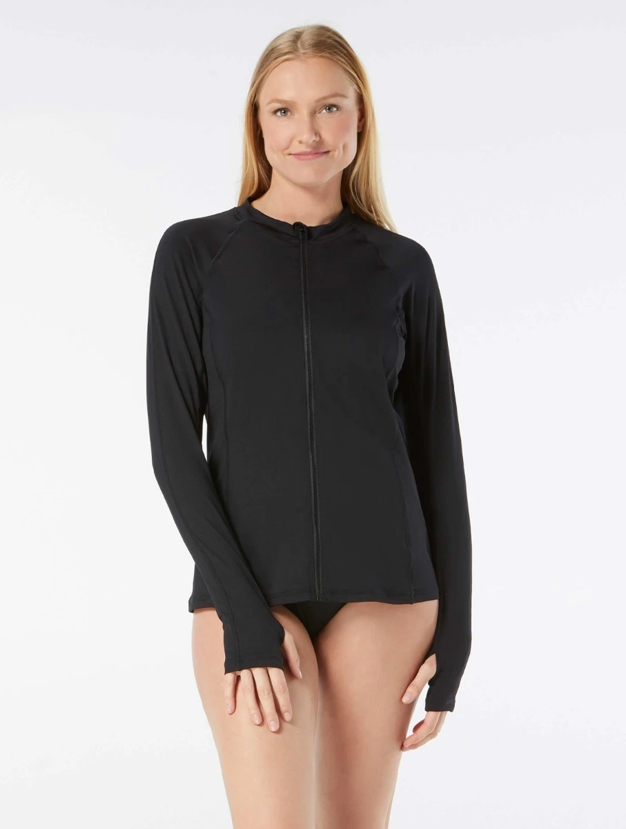 In the pool or under the sun, the Gabar Long Sleeve Swim Shirt keeps you protected and comfortable during any water activity. Our exclusive fully lined Hydrofinity swimsuit fabric is chlorine resistant for 300+ hours of use, breathable and provides UPF 50+ protection.