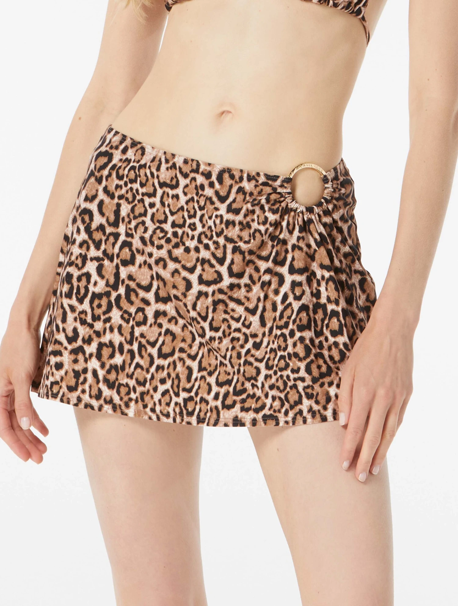 A coveted and chic cover up that you’ll be styling every season! The MICHAEL Michael Kors Logo Ring Cover Up Skirt features a gold, logo ring accent in a bold wildcat print. Pair it with a swim top or a solid shirt and sneakers for a versatile bottom.