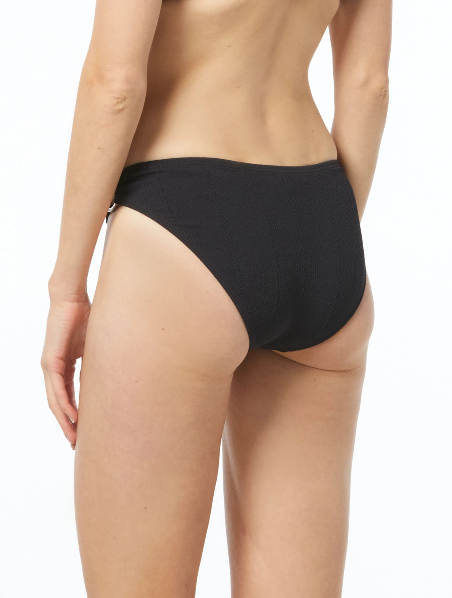 Go bold with the MICHAEL Michael Kors Ring Bikini Bottom! In simple solids in a textured fabric paired with a logo ring accent, this bikini bottom is anything but boring.