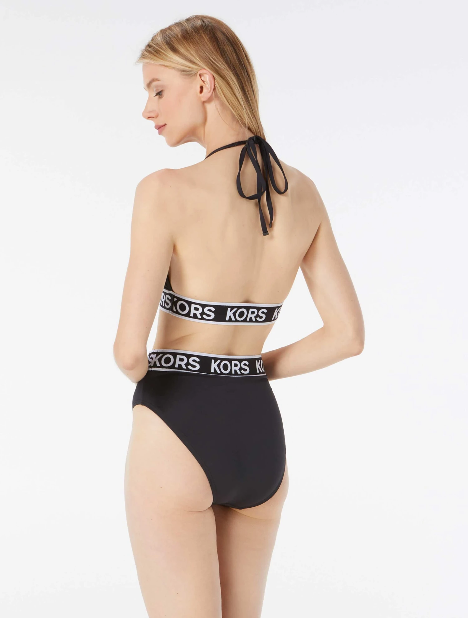 We love a logo! The MICHAEL Michael Kors Logo Elastic String Bikini Top features a logo trim elastic band, adjustable halter strap, and removable soft cups for the perfect amount of logo and blend with solids.