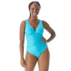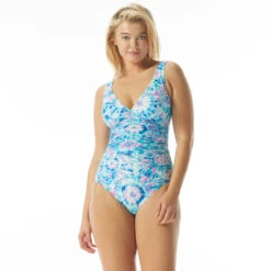 Coco Contours Solitaire V-Neck Bra Sized Underwire One Piece Swimsuit – All Over Tie Dye