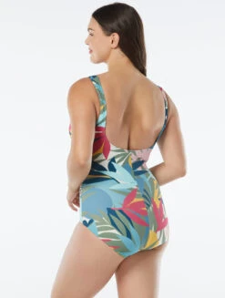Coco Contours Solitaire V-Neck Bra Sized Underwire One Piece Swimsuit – Rainforest Leaves